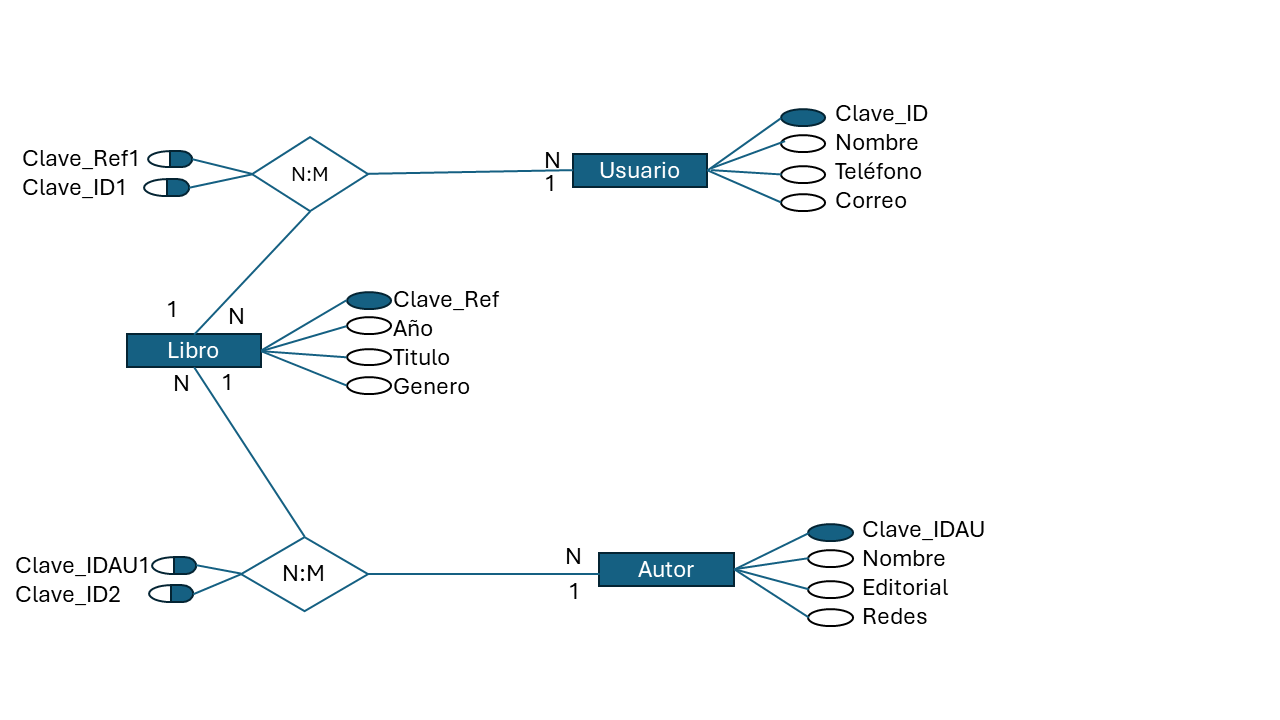 22. Esquematice un modelo entidad relación enfocado a un sistema bibliotecario.